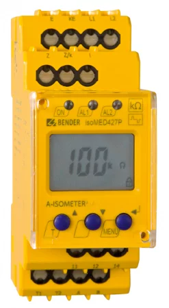 Hlídač izolačního stavu pro jednofázové střídavé IT sítě do 230 V určený pro monitorování lékařských a zdravotnických prostor s integrovaným monitorováním zatížení a teploty oddělovacích transformátorů a generátorem proudu pro lokalizaci poruchy.