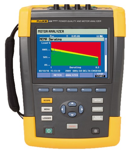Model 438-II představuje ideální přenosný měřicí přístroj pro analýzu motorů, který umožňuje lokalizovat, předpovídat, eliminovat a řešit problémy s kvalitou elektrické energie v třífázových a jednofázových energetických distribučních systémech, a současně poskytne technikům informace o mechanických a elektrických parametrech, které potřebují ke směrodatnému posouzení stavu motoru.