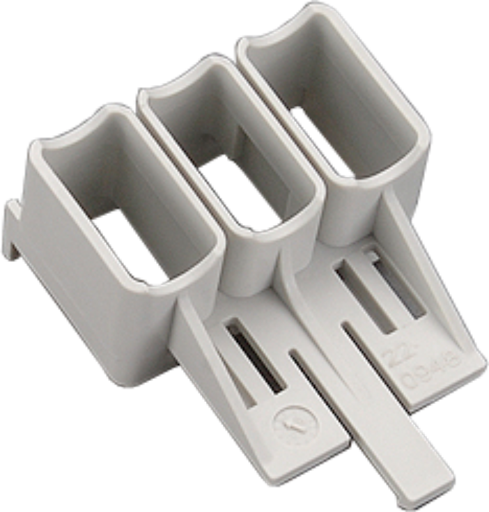 Adaptér 25A (IEC, UL), 3-pólový, dvojitý; 2 nastavitelné montážní lišty; vodiče AWG 12 (4mm2); rozměry: 90 x 200 x 63 mm; tep. odolnost 125°C; samozhášivost dle UL94;