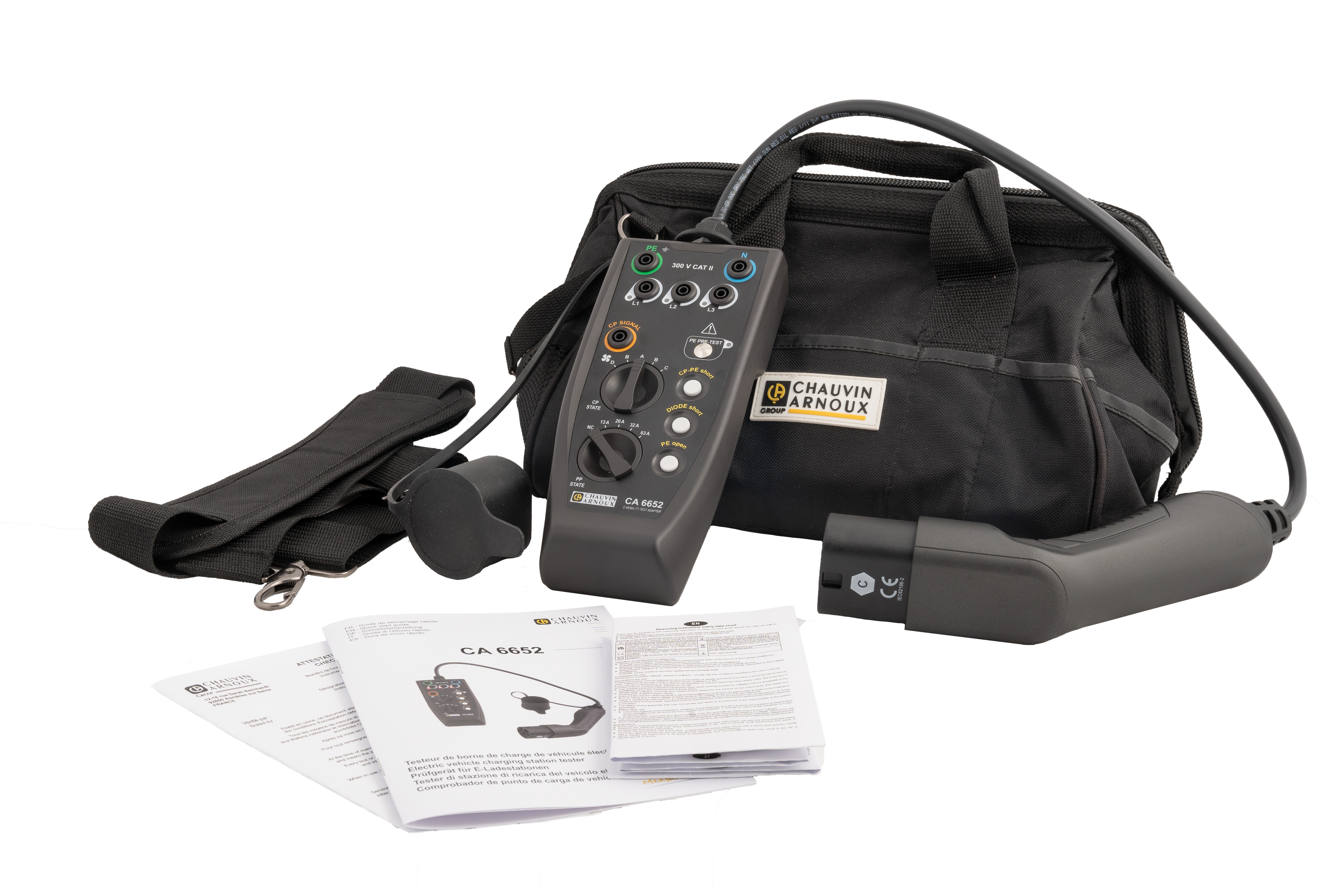 Sada testovacího adaptéru CA 6652 s konektorem typu 2 je určena k testování funkčnosti a bezpečnosti dobíjecích stanic v režimu 2 a 3 pro dobíjení střídavým proudem. Adaptér napodobuje elektrické vozidlo a spouští nabíjecí cyklus, aktivuje výstup napětí a proudu a umožňuje provádět testy v kombinaci s vhodnými měřicími přístroji, jako je tester instalací (CA 6117) nebo ScopeMeter® (HANDSCOPE II CA 942). Pomocí sady adaptéru lze nabíjecí stanice testovat v souladu s normami IEC/EN 61851‑1 a IEC/HD 60364‑7‑722.