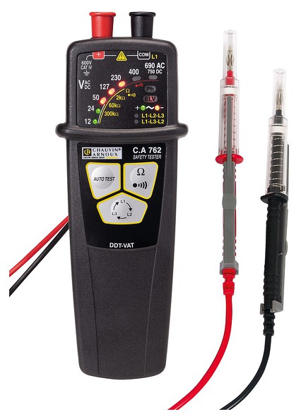 Měření AC / DC napětí od 12V do 690 V AC / 750 V DC, test propojení, test sledu fází, jednopólová detekce fáze, optický a akustický test propojení se třemi hladinami indikace. Vysoká odolnost, odnímatelné hroty a krytí IP 65, CAT IV / 600V. Plně v souladu s ČSN EN 61243-3 ed.2: 2011.