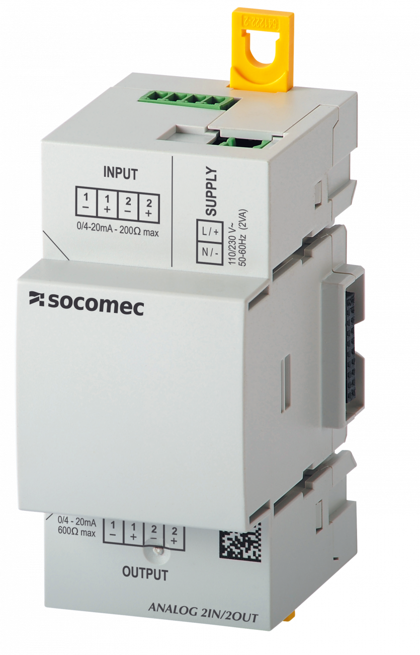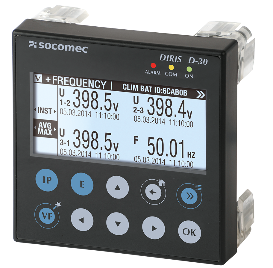 - nepřímé měření pomocí proudových senzorů Socomec - až 4 ks (konfigurace např. 1x zátěž 3P+N, nebo 4x 1 fázová zátěž).