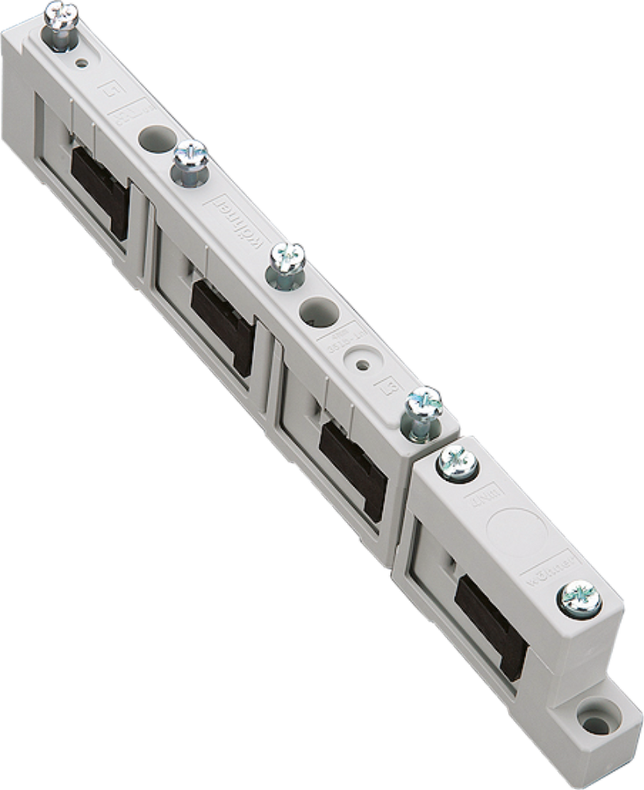 Univerzální držáky plochých nebo profilových přípojnic. V 1-pólové, 2-pólové, 3-pólové a 4-pólové variantě.