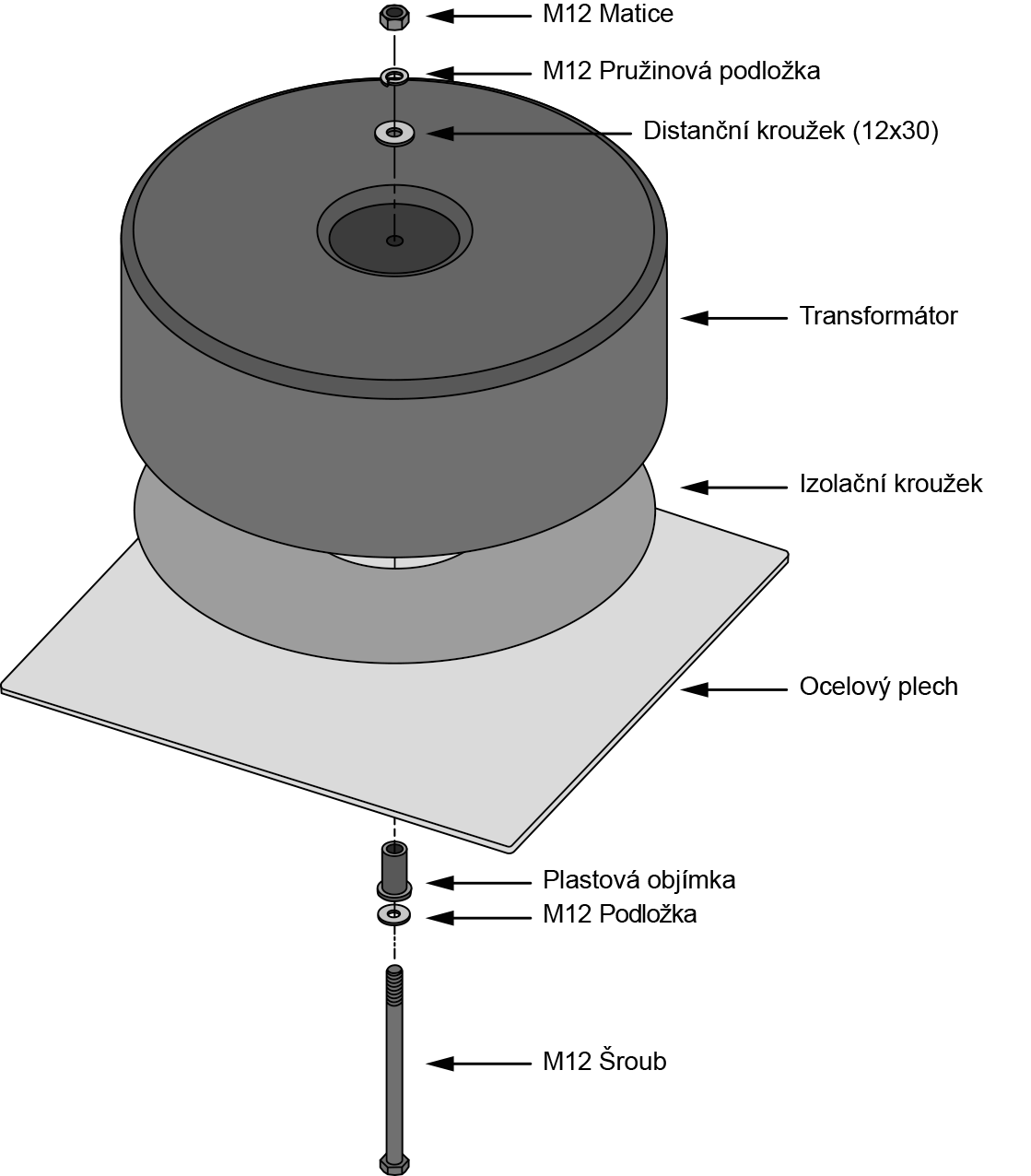 Transformátory se instalují do vhodných rozvodných skříní nebo samostatných transformačních skříní podle montážního schématu.