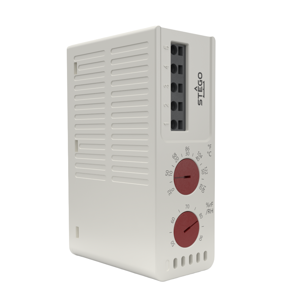 Kompaktní elektronický termo-hygrostat je určen pro monitorování teploty a relativní vlhkosti v uzavřených zařízeních s elektrickými a elektronickými komponentami. Při překročení nastavených hodnot vlhkosti nebo teploty spíná topné těleso (nebo případně ventilátor) k zamezení tvoření kondenzace vlhkosti.
