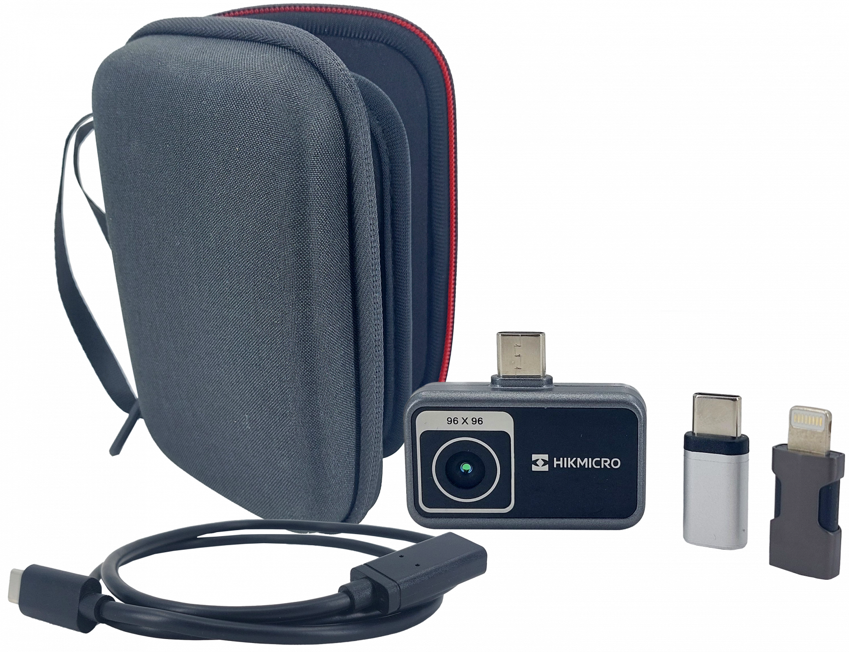 Modul termokamery Hikmicro MiniE je vyroben z odolné hliníkové slitiny a odolá pádu z 1 m na pevnou podložku. Díky své nízké hmotnosti malým rozměrům nezatěžuje USB konektor a snižuje tak riziko jeho poškození. V základní dodávce je obsažen i prodlužovací adaptér pro použití s telefony a tablety v ochranném pouzdře nebo prodlužovací kabel pro měření v těžko dostupných prostorech.