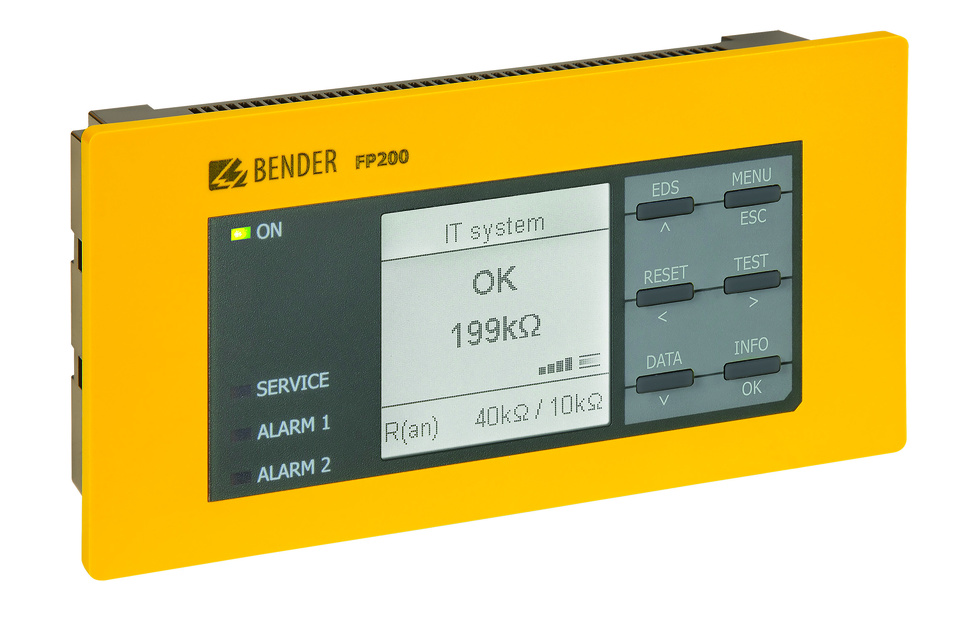 Hlídač izolačního stavu pro monitorování izolace zařízení v neuzemněných AC, AC/DC a DC sítích (IT sítích) s ovládacím panelem FP200