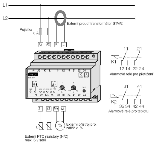 Monitor zátěžovacího proudu ve fázovém vodiči a teploty vinutí oddělovacího transformátoru LSE470 slouží jako doplňkové zařízení k hlídačům izolačního stavu BENDER typu 107TL47. Přístroj se používá jako monitor pro kontrolu zatěžovacího proudu jednofázového oddělovacího transformátoru a teploty vinutí. K vlastnímu snímání proudu slouží proudový transformátor STW2. V kombinaci s třífázovým adaptérem LSD490 lze monitor zátěže a proudu LSE470 použít pro monitorování třífázových transformátorů.