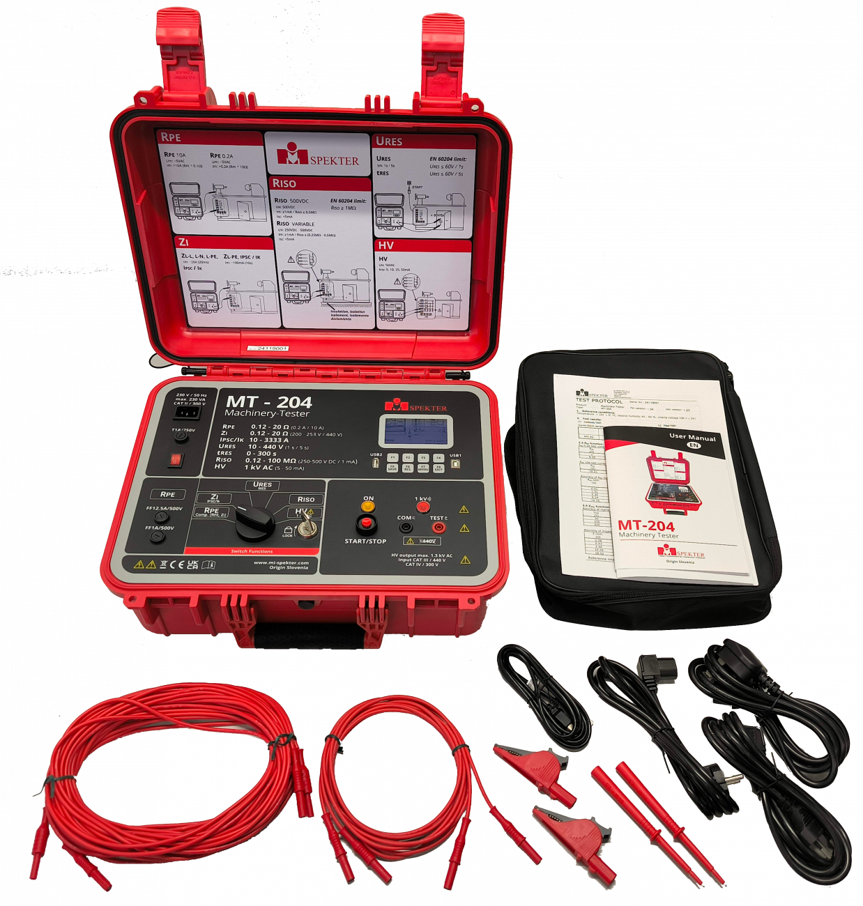 Multifunkční tester Mi Spekter MT-204 je určen k provedení testů souvisejících s elektrickou bezpečností u ručního nářadí a spotřebičů, strojů a strojního zařízení. Je ideální pro elektrickou kontrolu a certifikaci zařízení při periodické revize zařízení nebo pro jejich pravidelnou údržbu.
