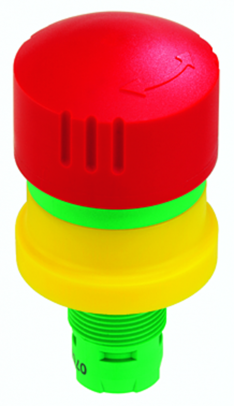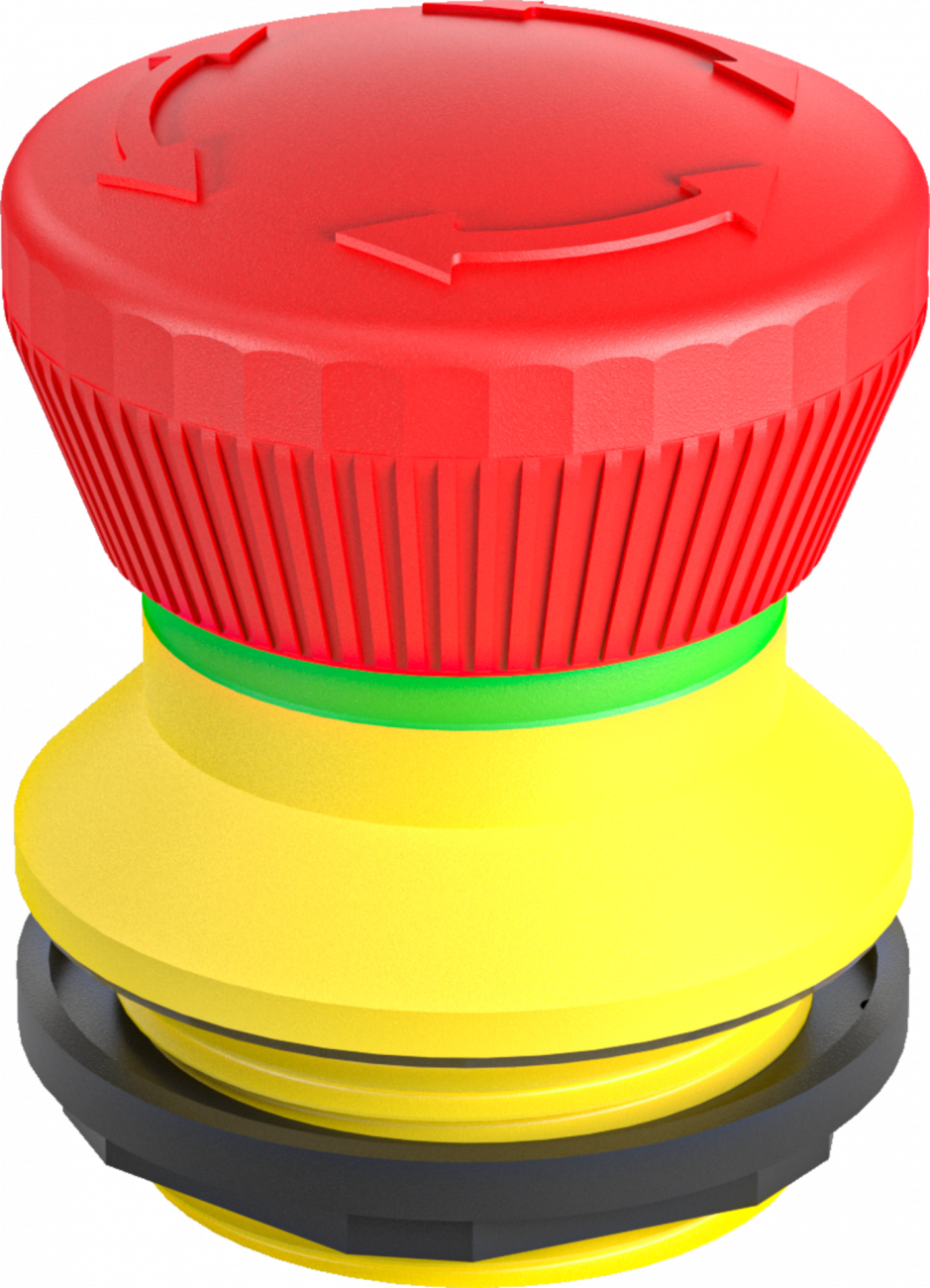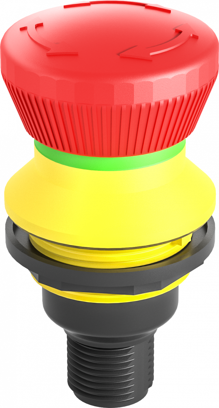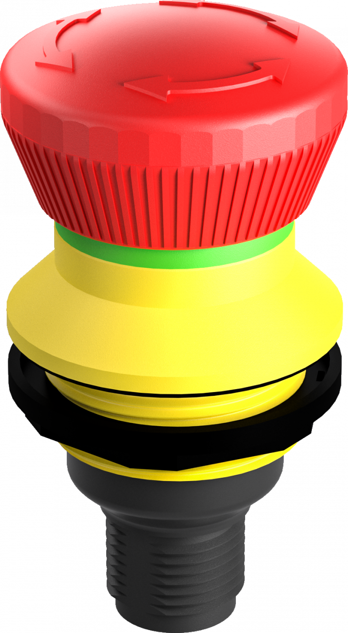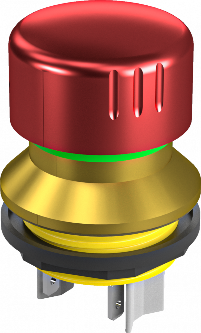 Nouzová tlačítka mají vysunutou hlavicí kulatého tvaru s kruhovým nebo čtvercovým výřezem do panelu.Hlavice jsou primárně určená k nouzovému vypnutí a rozpojení elektrického obvodu při nouzové situaci.