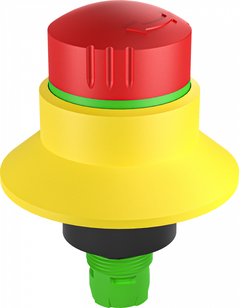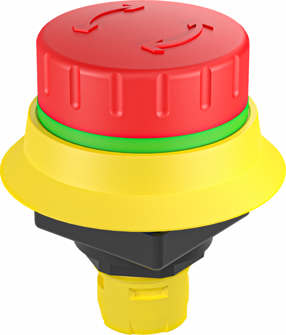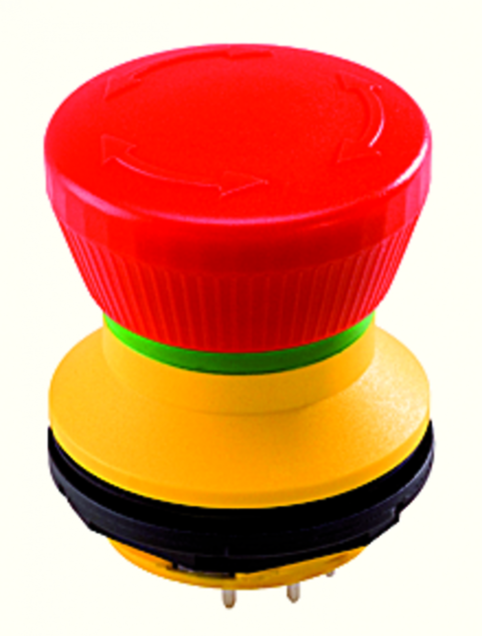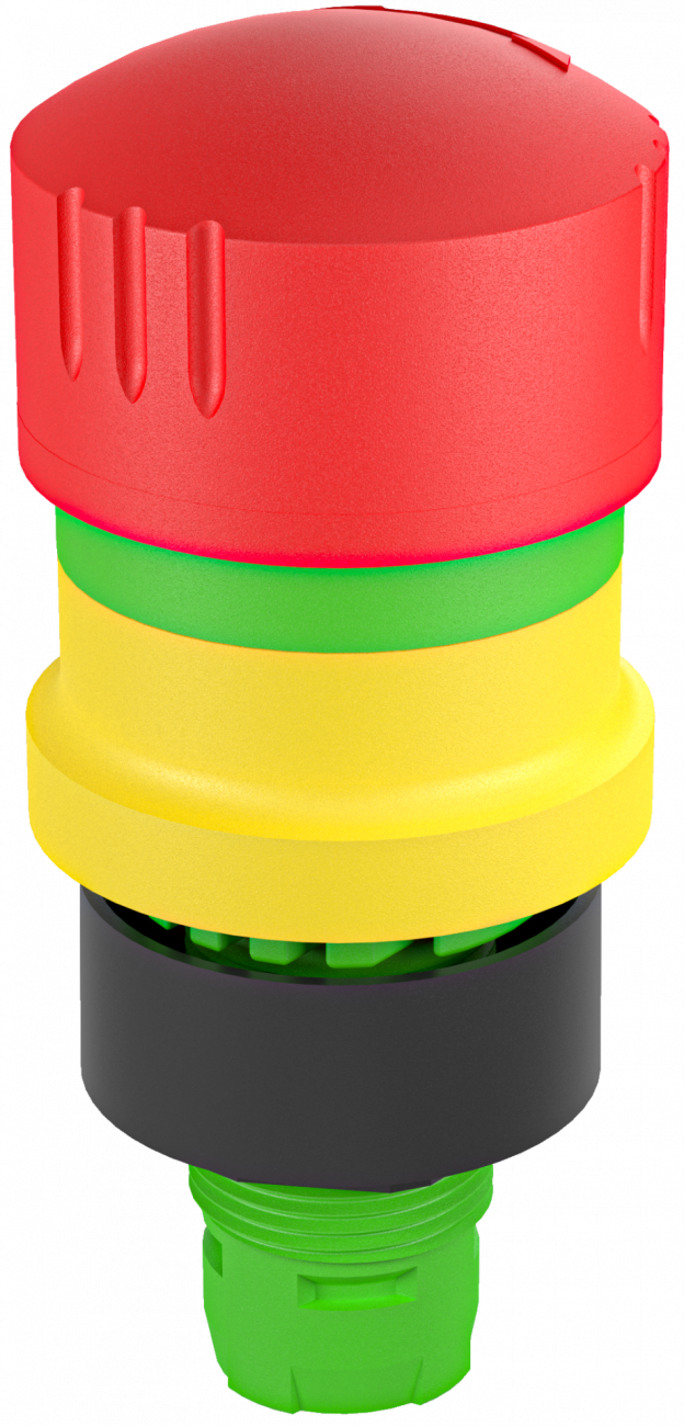 Nouzová tlačítka mají vysunutou hlavicí kulatého tvaru s kruhovým nebo čtvercovým výřezem do panelu.Hlavice jsou primárně určená k nouzovému vypnutí a rozpojení elektrického obvodu při nouzové situaci.