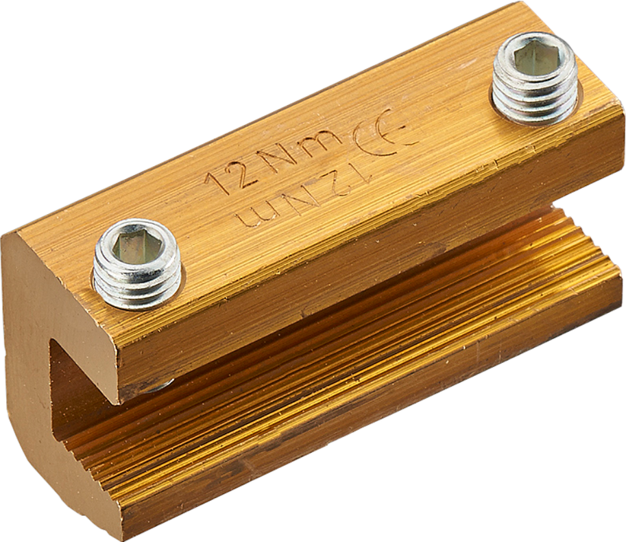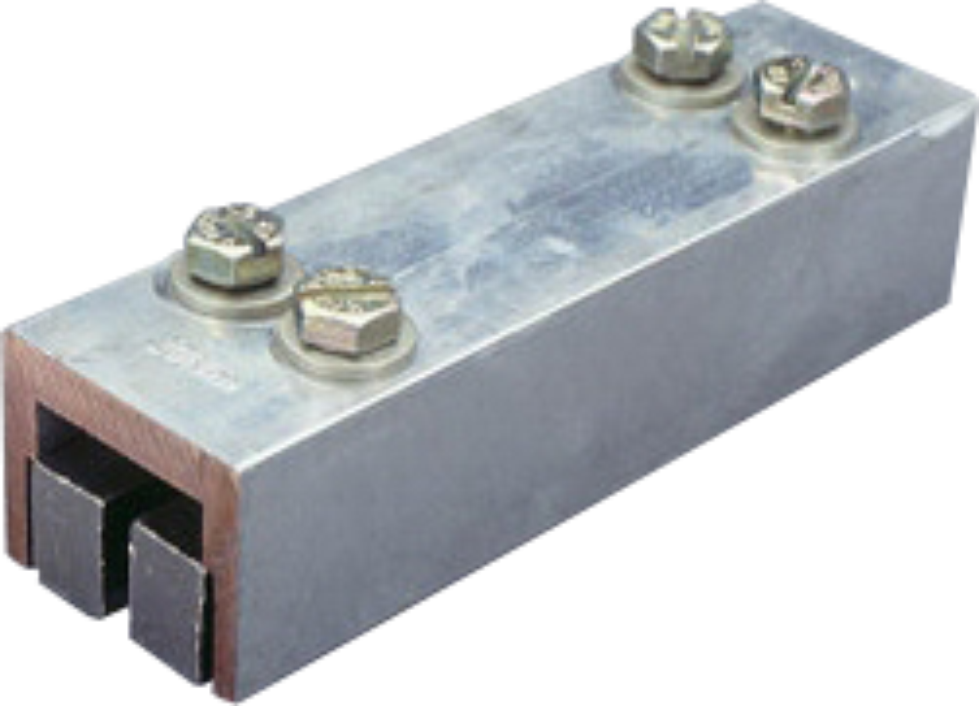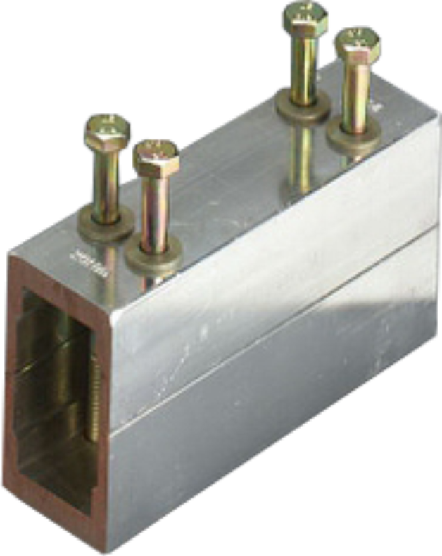 Svorky použitelné pro spojení dvou přípojnic stejných rozměrů. Pro ploché i profilové přípojnice s proudovou zatížitelností do 2500 A.