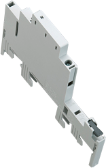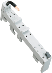 - Nosná lišta z umělé hmoty (DIN EN 50022), svisle nasatavitelná v 1,25 mm rastru (v případě 3-pólového přístroje)