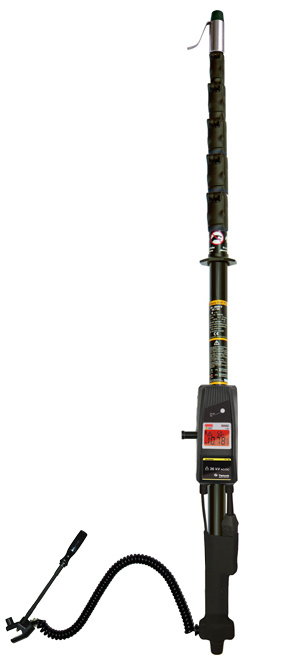 Teleskopické provozní zkoušečky pro drážní systémy do 1 000 V AC / 1 500 V DC se zobrazením naměřené hodnoty na LC displeji. Dosah až 6,2 m, s dodatečnou zátěží i bez ní