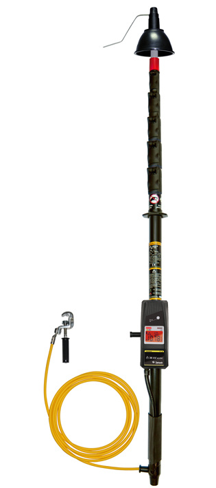 Teleskopické vysokonapěťové provozní zkoušečky do 36 000 V AC / DC se zobrazením naměřené hodnoty na LC displeji. Dosah 6,2 m.