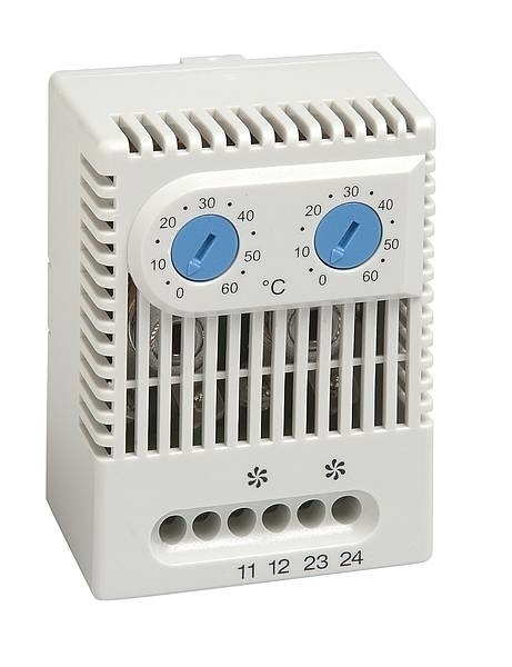 - Termostat (spínací-normálně otevřený) pro regulaci ventilátorů, výměníků tepla nebo spínání signálních zařízení v případě překročení nastaveného teplotního limitu.